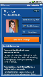 eHarmony released their iPhone Dating App. On September 28 a eHarmony Dating App for Android phones was released. As with the iPhone version, users can view their list of matches, look at members profiles, and communicate with them. Communication includes using the guided communication process, sending ice breakers and eHarmony Mail. Some parts of your profile can also be updated through the app as well like your photos (by using the camera built into your phone).