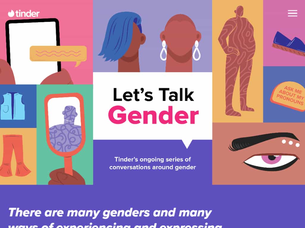 In time for Pride month, Tinder has launched a new glossary and resource called “Let’s Talk Gender,” aimed at helping its users to understand and talk about gender with potential dates.